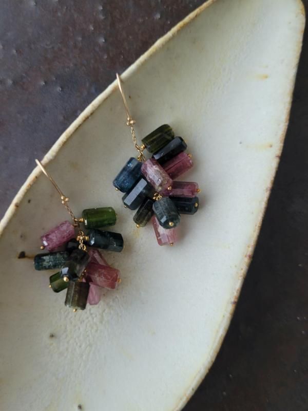 ひとつずつ表情と色合いが異なるトルマリンの繊細な輝きが、印象深く耳元を彩ります。