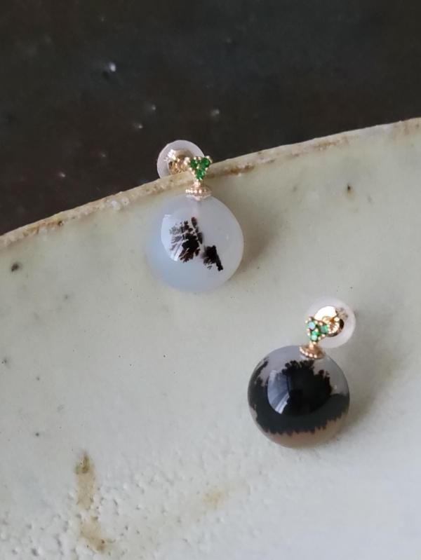 MAISON RUBUS(メゾンルーバス)ピアス foret piece montana agate/green garnet 10KYG