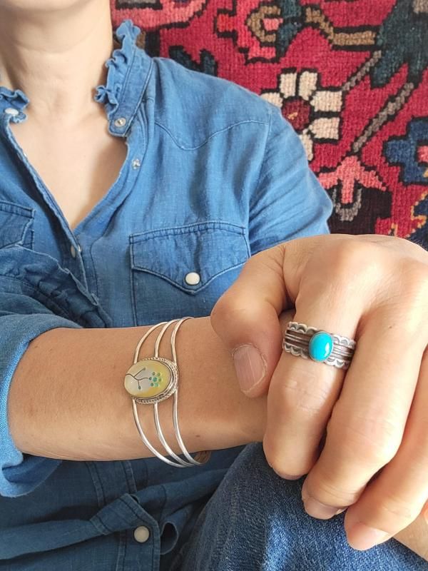 今回届いたターコイズリングは、1970年代のOLD Navajoジュエリー。