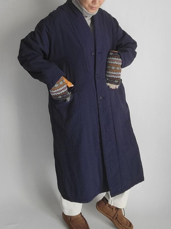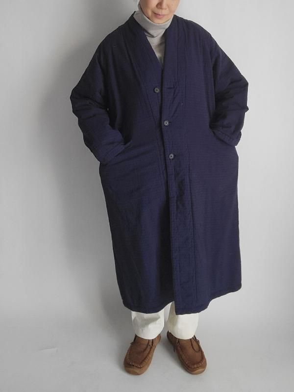 maison de soil(メゾンドソイル) ビックシルエット キルトコート  PADDED ORGANIC COTTON CHECK (OVERDYE) V-COLLAR COAT